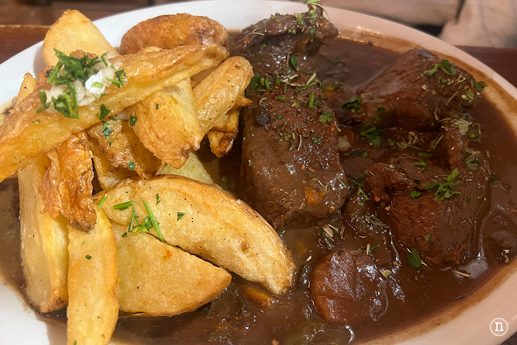 Este local destaca por su decoración, todo en madera típico de un lugar donde sabes que si o si acabarás probando una cerveza. Nosotros, en este lugar, probamos el guiso montañés que consistía en un plato de lentejas por 4,7 euros y el ciervo a la cazadora por 7,4 euros. Tienen diferentes cervezas y el precio no es caro pues la cerveza a la miel nos costo 1,5 euros y el total de la cena para dos fueron 15 euros.