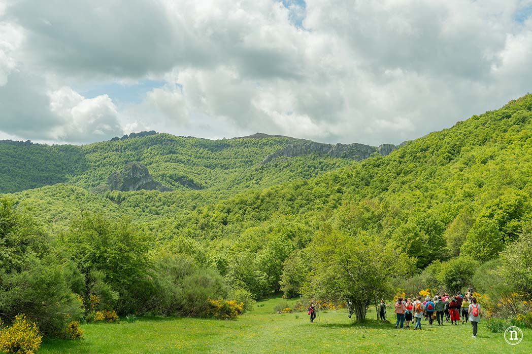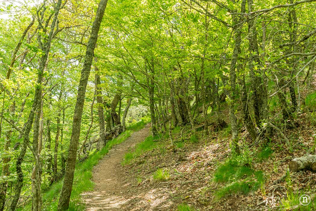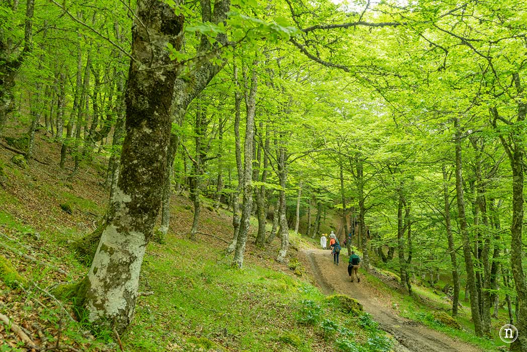 Tras una pequeña subida llegamos a un pequeño prado antes de internarnos en un hayedo precioso. Si visitar los hayedos en otoño es un buen plan, otra opción es venir a disfrutar de ellos en primavera, cuando disponen de un color verde encendido debido a las ultimas lluvias caídas.