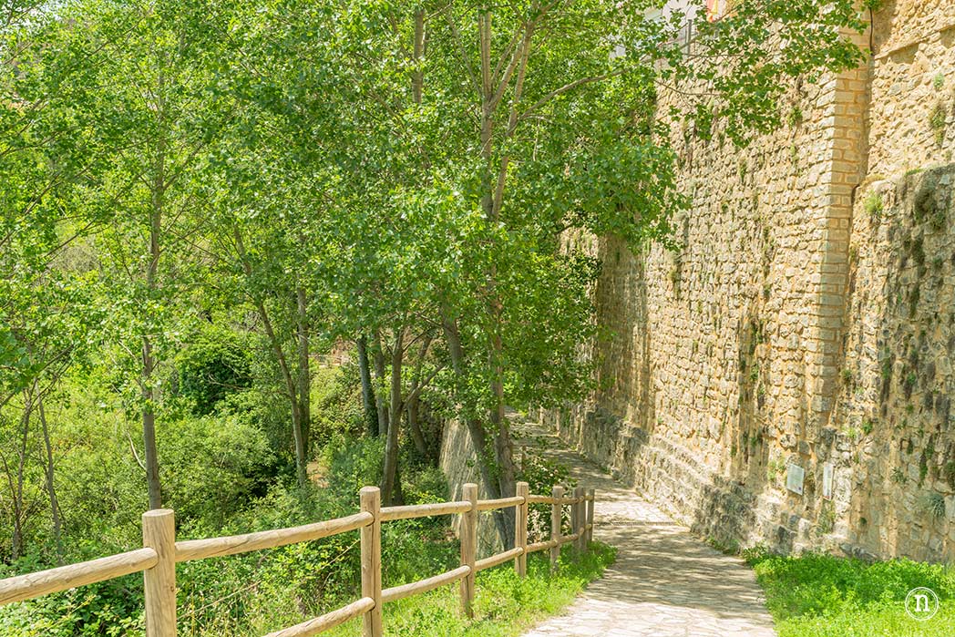 A la vuelta de la iglesia y junto a la carretera, parte un camino bien señalizado junto a la muralla de Cañete.