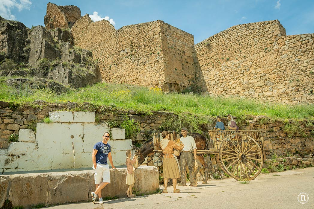 Tras nuestro paseo por los senderos alrededor de la cascada, nos adentramos en el pueblo de Cañete para conocer más obras del Paisaje Ilustrado. Es entonces cuando dos vecinos del pueblo, sentados en la puerta de su casa, nos indican hacia dónde debemos de dirigirnos. Nos transmiten una sensación estupenda al invitarnos a su casa y decirnos de corazón que si en algún momento necesitamos algo ahí es donde viven. ¡Que bonita es la gente de este lugar!