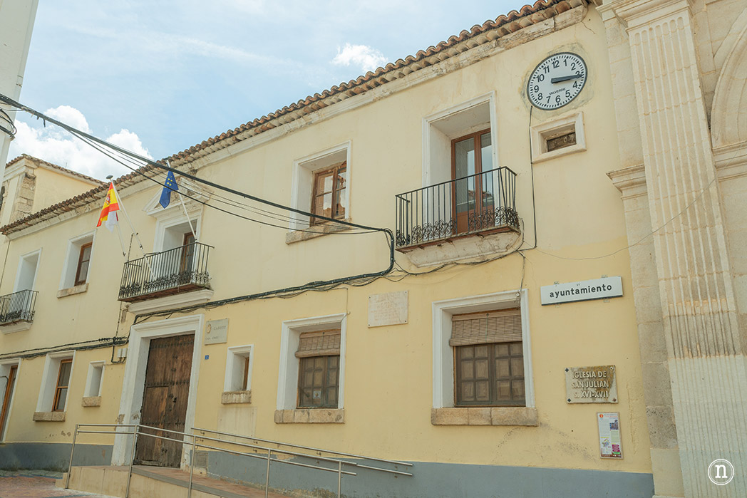 En la Plaza Mayor encontramos el Ayuntamiento, que es fácilmente reconocible por las banderas y su reloj en la fachada.