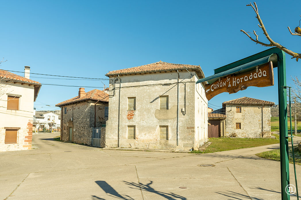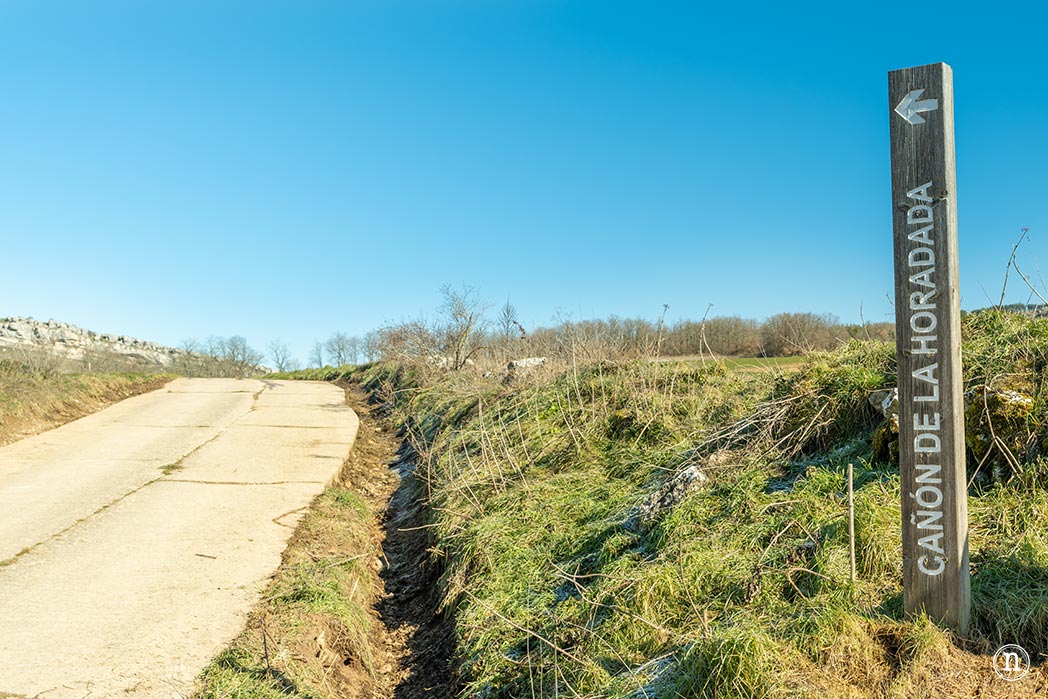 Salimos de Mave por la calle de la Horadada junto a la Plaza de la iglesia para coger a mano izquierda la carretera y girar la primera a la derecha. Veremos la señal que marca el inicio de la ruta Cañón de la Horadada.