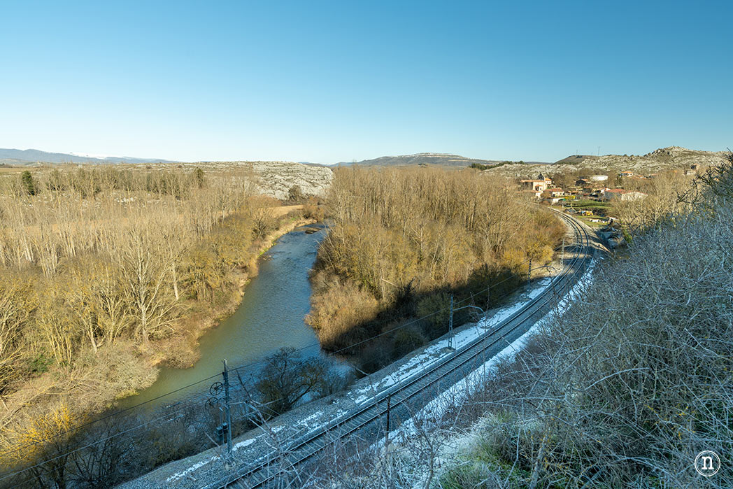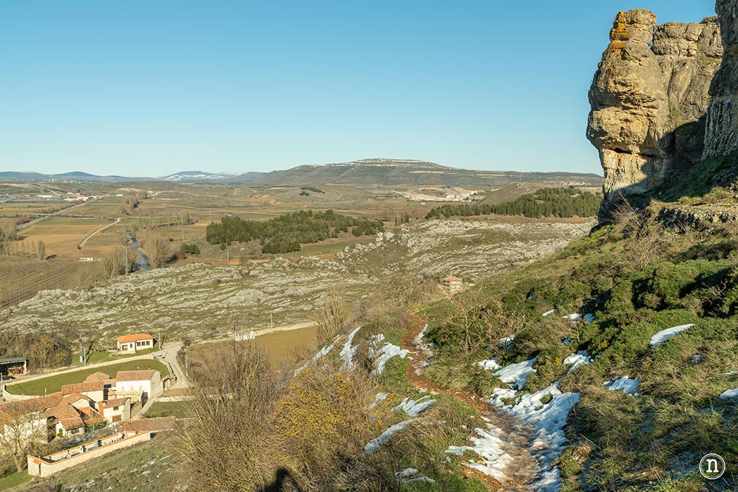 Nada más salir de la cueva vamos caminando por el borde de la muela viendo como el Pisuerga se encajona y como los buitres vuelan por encima de nuestras cabezas mientras de fondo observamos las nieves en la montaña Palentina.
