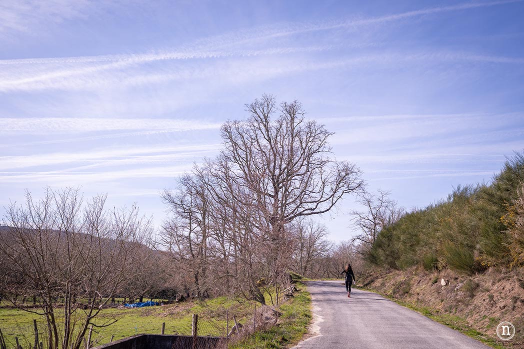 Nada más salir del pueblo, el camino o la pista asfaltada se torna en un sendero estrecho, lleno de hojarasca y musgo.