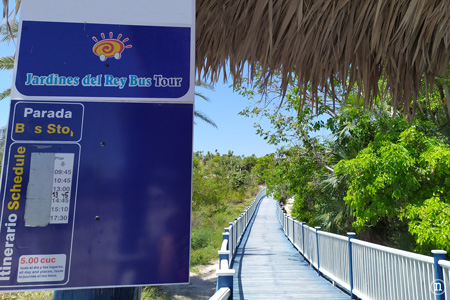 Playa Pilar es la última parada del autobús turístico que recorre los cayos. El bus para exactamente donde veis en la foto. Antes de coger el puencito de madera que os lleva al «paraiso», fijaros bien en el horario de vuelta, ya que sino tendréis que intentar localizar a un taxi para regresar.