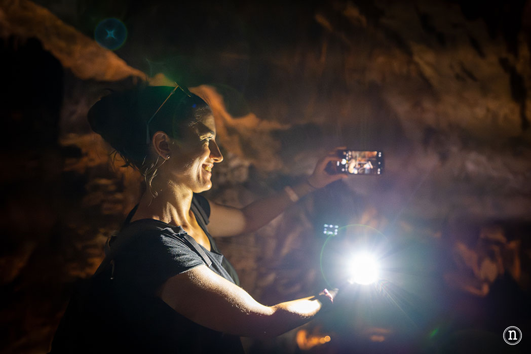 Por el interior de esta gran cueva avanzamos por una pasarela de madera cuyo cometido es la conservación del suelo, impidiendo que pisemos sobre este directamente pues se trata del lecho natural de un gran río. La humedad se nota en el ambiente y hace que nuestra lente se tome.