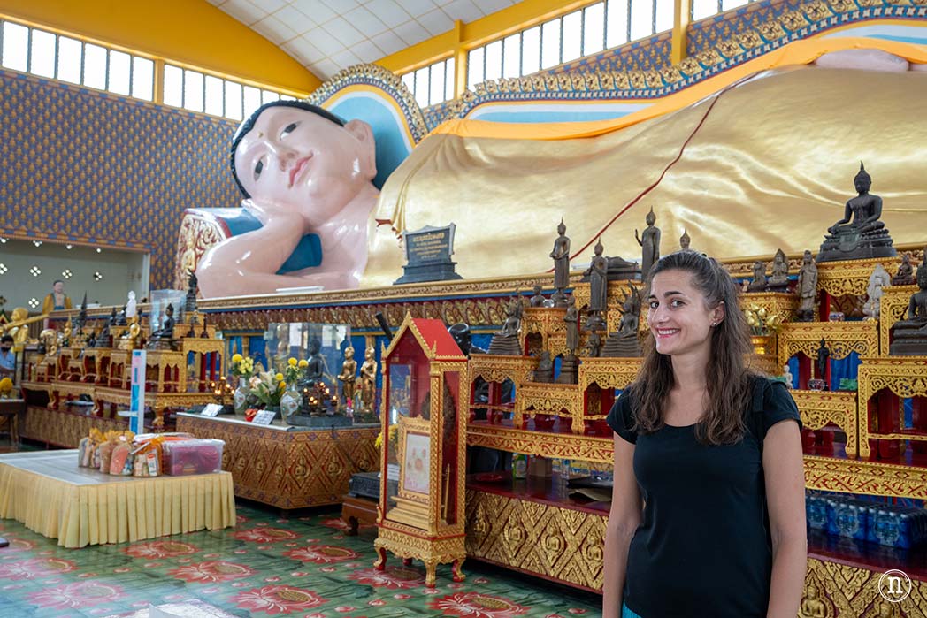 El templo fue construido en 1830 y posee un buda reclinado de 33 metros de largo que sirve de columbario.