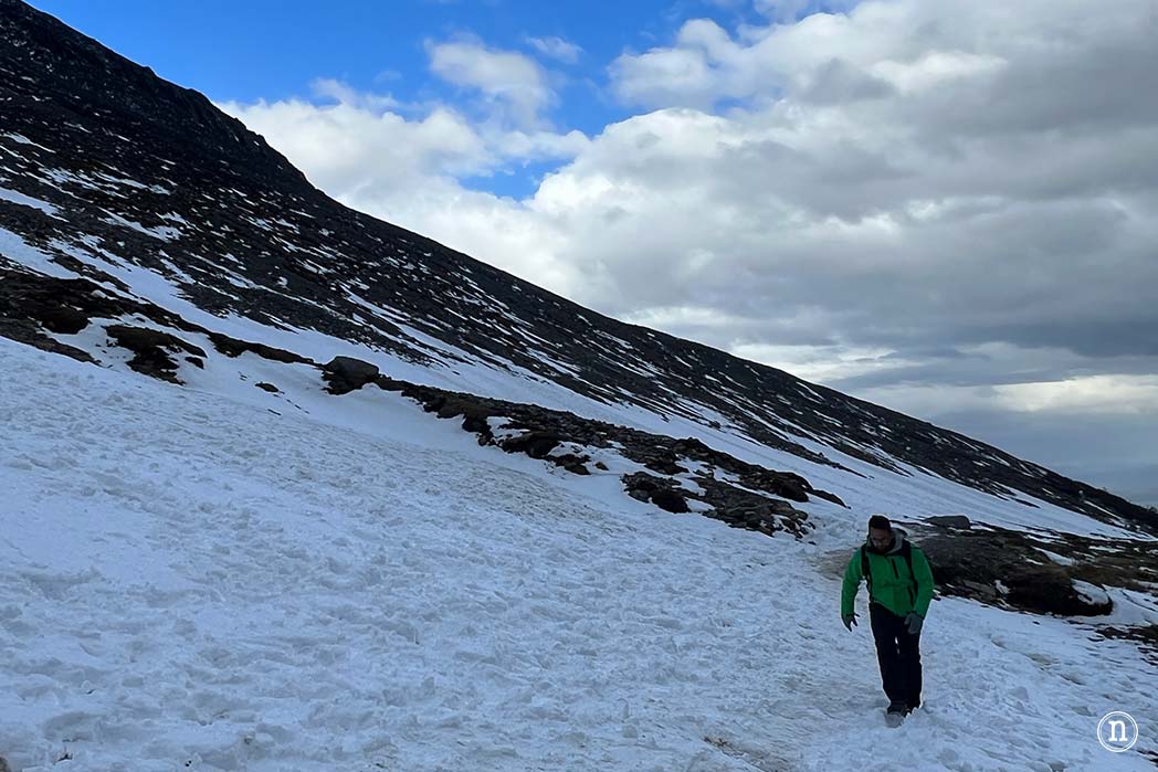 De pronto, comienza a aparecer la nieve en las orillas del camino por lo que debemos estar cerquita del glaciar. La ruta no era demasiado larga por lo que entendemos que no quedará demasiado para llegar al final.