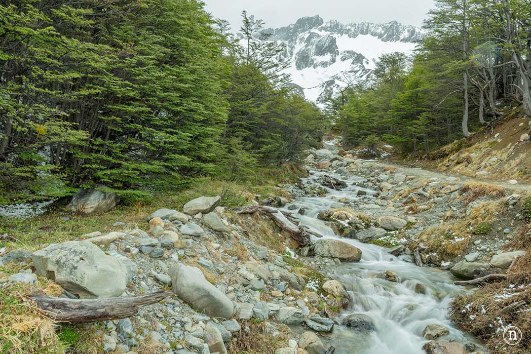 Pronto, entre la arboleda formada por lengas, coihues y ñires, aparece el Arroyo Buena Esperanza fruto del deshielo del glaciar que venimos a visitar. El hipnótico sonido del discurrir del agua nos acompañará casi hasta el final de la ruta.
