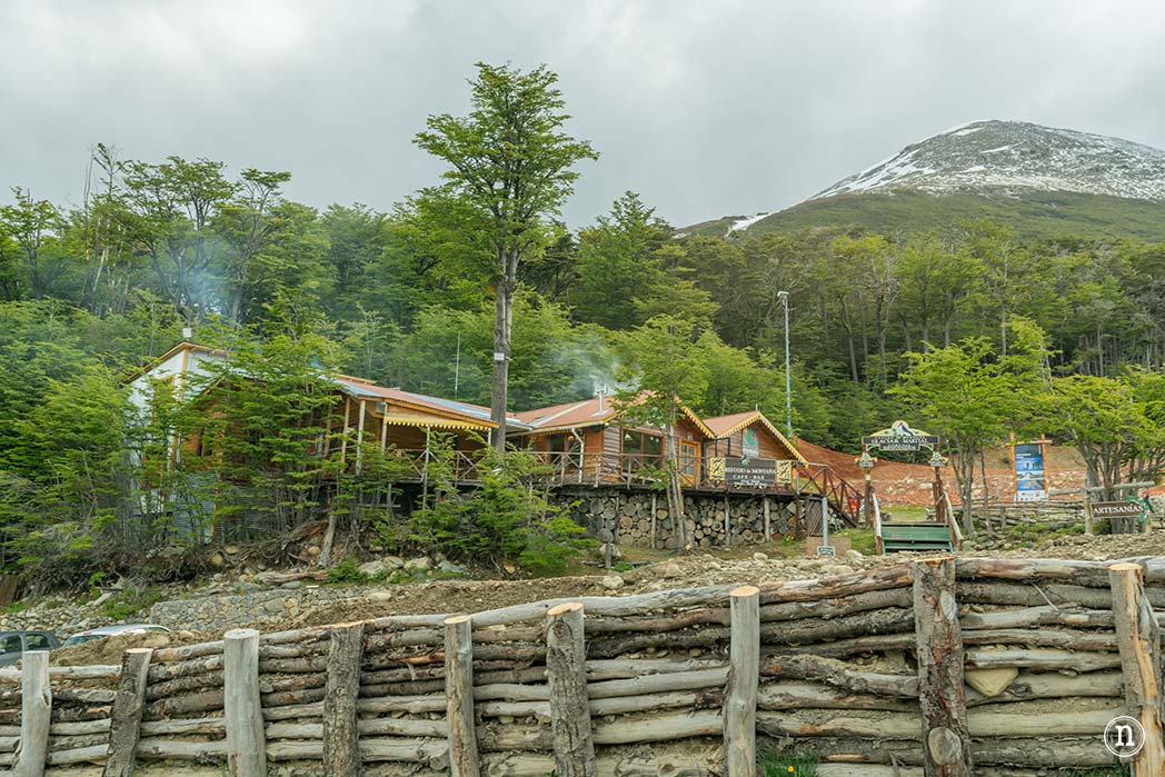 A los pocos metros, nos encontramos con el Refugio de montaña Glaciar Martial y parece que está en funcionamiento ya que vemos salir humo por su chimenea. Aunque en la ciudad del Fin del Mundo el día está frio y apetece tomar algo caliente, nosotros seguimos caminando hacia arriba.