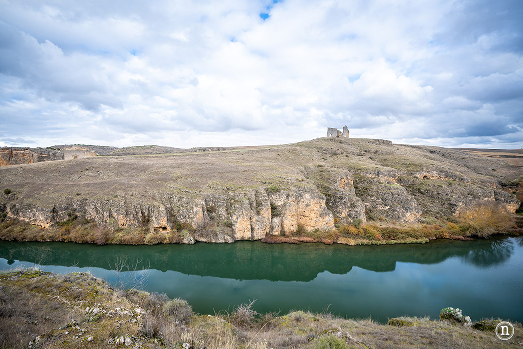 En la otra orilla, también observamos algunos detalles. Podemos apreciar dos ermitas, una de las cuales son las Ruinas de Los San Pedros y la otra, Las Ruinas de Los San Martines. Entre estos dos antiguos templos se encuentran los restos de un castro celtíbero.