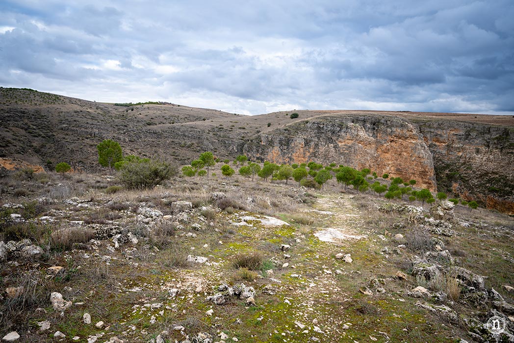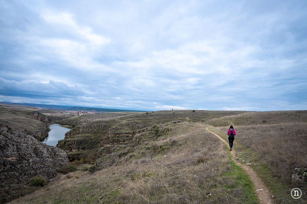 Por lo tanto, con cuidado, descendemos hasta coger esta vereda que nos conduce a caminar junto a las Hoces del Duratón y a visitar todos los miradores de esta zona. Echamos la vista atrás, disfrutamos de los primeros metros recorridos y tomamos esta fotografía para que te hagas una composición del lugar.