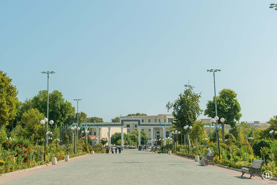 Se encuentra justo enfrente de la estación de trenes de Kokand.