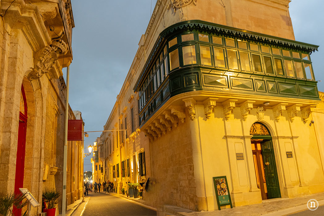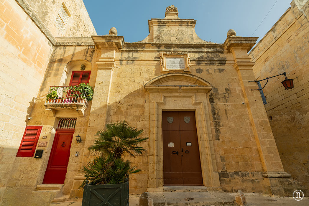 Antes de cruzar el puente que nos llevará a Mdina, empezamos en el Casino Notabile, nuestra primera parada. Fue construida por nobles de Mdina y Rabat para tener un lugar donde conocerse y jugar a las cartas en paz. El arquitecto fue el británico Western Paulson, que llegó a Malta en 1867 y trabajó unos cuantos años. El edificio es de 1887, un primer ejemplo de la arquitectura y estilo británico en la época.