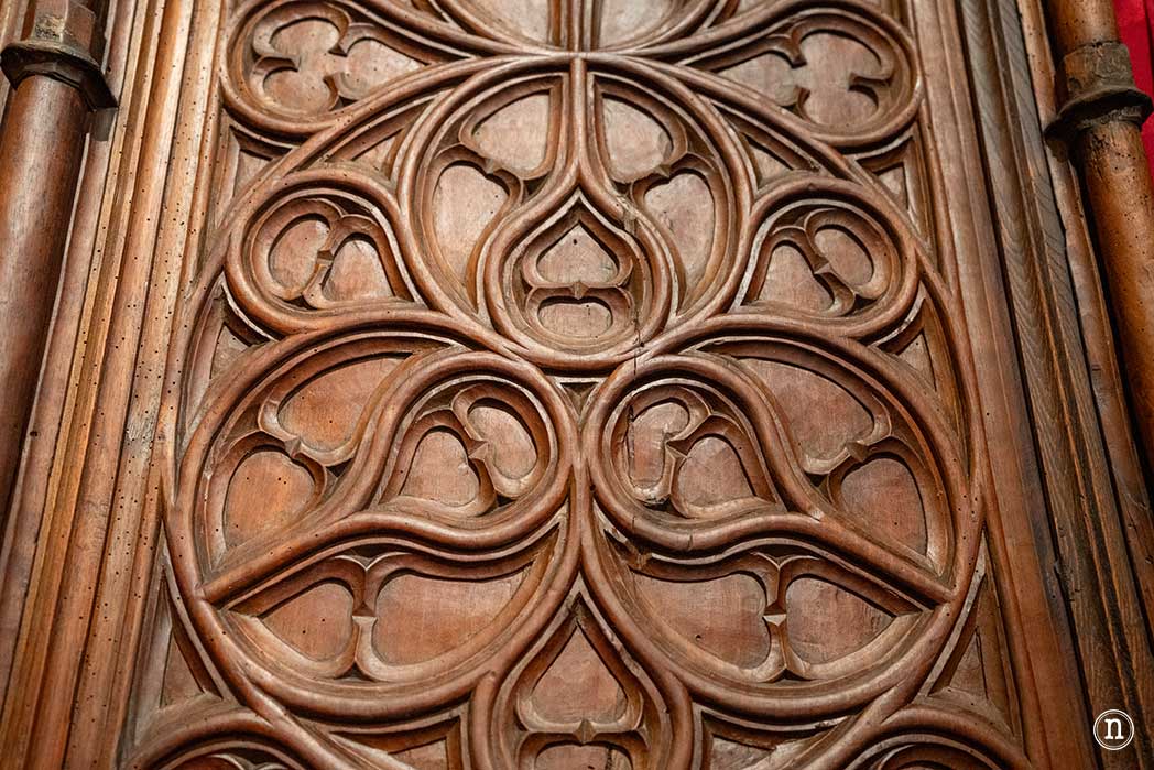La madera utilizada para la sillería de estilo gótico flamígero y renacentista es el nogal, una de las maderas más caras y nobles, muy apreciada por los maestros ebanistas por su belleza y características.