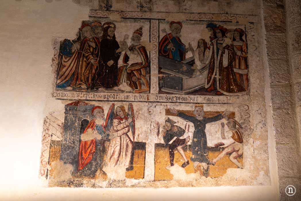 Las pinturas que podemos observar bajo los órganos se ubicaban en los muros exteriores del coro y muy probablemente sean de finales del s. XV o comienzos del s. XVI. Se trata de pinturas con un estilo y forma que difieren mucho del resto de obras que podemos encontrar en la catedral.