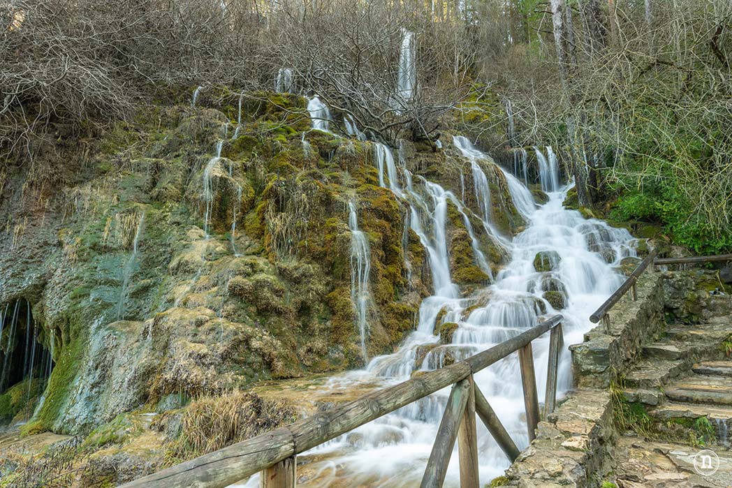 El camino continúa pues este no es el nacimiento del río Cuervo, tan sólo las cascadas que forma. Debemos ascender por las escaleras de la esquina derecha que, estos días atrás, estaban inundadas de agua.