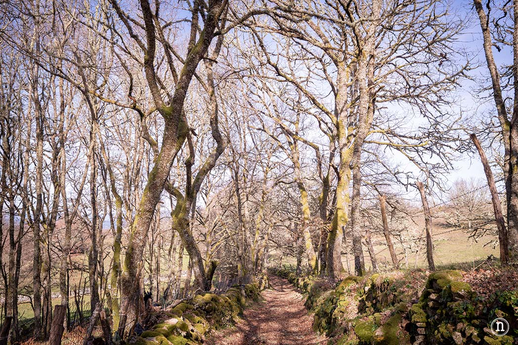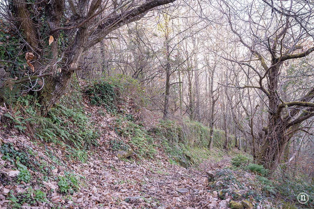 Sea como fuere, nuestros pasos continúan. Tras pasar junto a su cementerio, abandonamos el pueblo y tomamos un bonito sendero tapizado de hojarasca y piedras, que no nos dificulta demasiado avanzar pues en los alrededores del pueblo, el camino es sencillo y bastante llano en comparación con los repechos y desniveles que nos han traído hasta aquí.