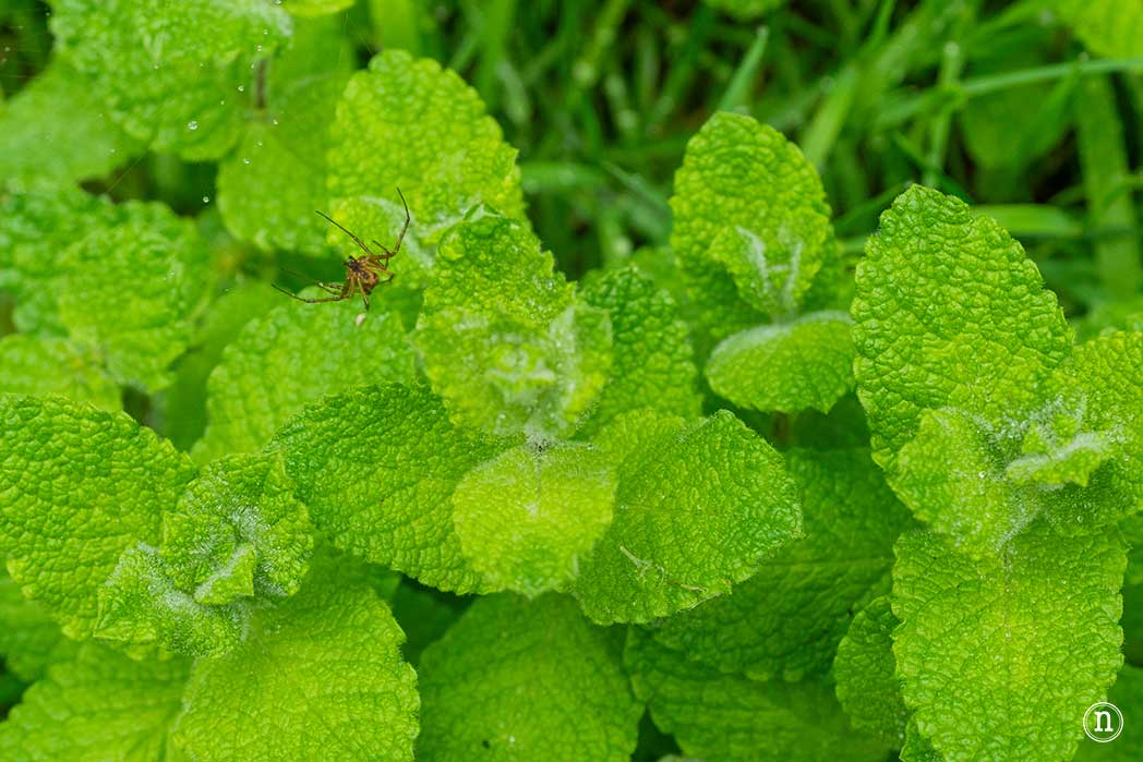 De pronto, mientras caminamos nos viene un aroma fresco, a menta. No procede de los eucaliptos si no de las hierbas que se encuentran junto a la orilla del camino donde una araña juguetona teje su tela.