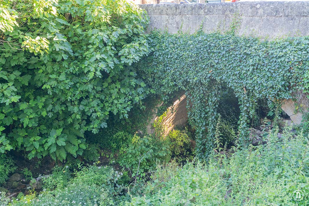 Totalmente cubierto por la vegetación, este puente de un solo ojo y arco de medio punto se encuentra junto al Chafaril.