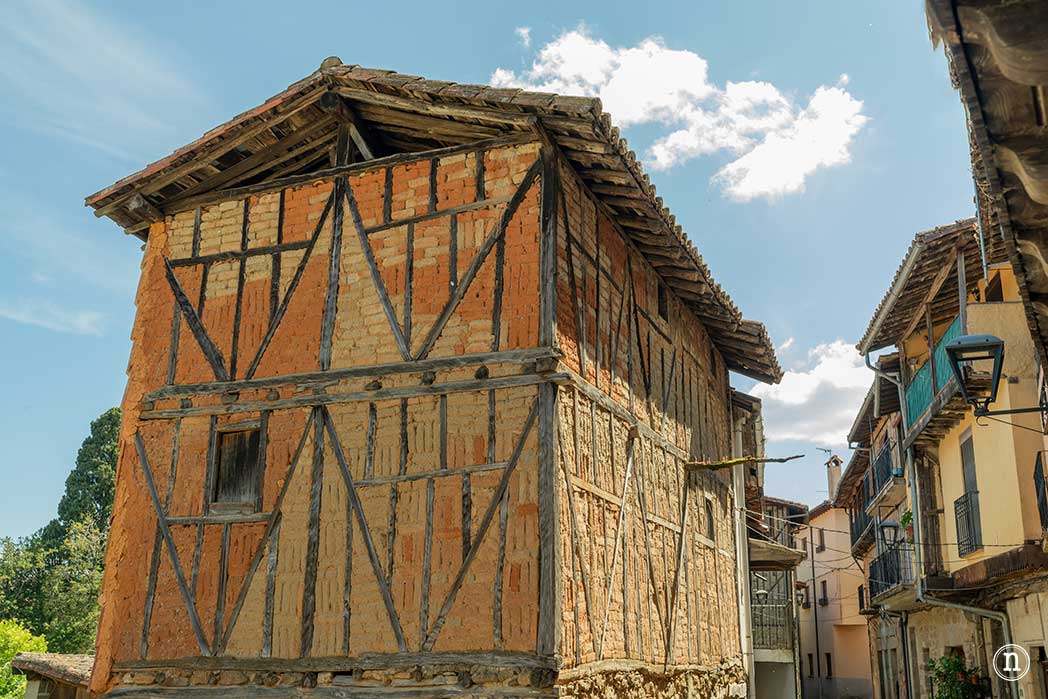 Las viviendas de esta zona suelen tener dos o tres plantas de altura donde la planta baja se construye con gruesos muros de piedra y entramados de madera en las plantas superiores. Los entramados se rellenan con adobes o mampuesto que en ocasiones son encalados posteriormente.