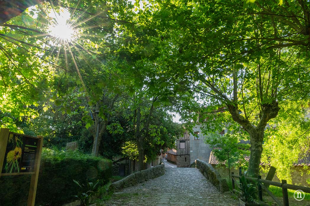 Desde la plaza mayor, nos dirigimos a la iglesia por la calle del Dr. Peña en lo que parece una de sus principales arterias. Se trata de una calle que condensa todo lo que nos ofrece este bello lugar como son edificios antiguos, casas palaciegas, ventanas y balcones llenos de flores y, al fondo, la iglesia con su esbelta espadaña.