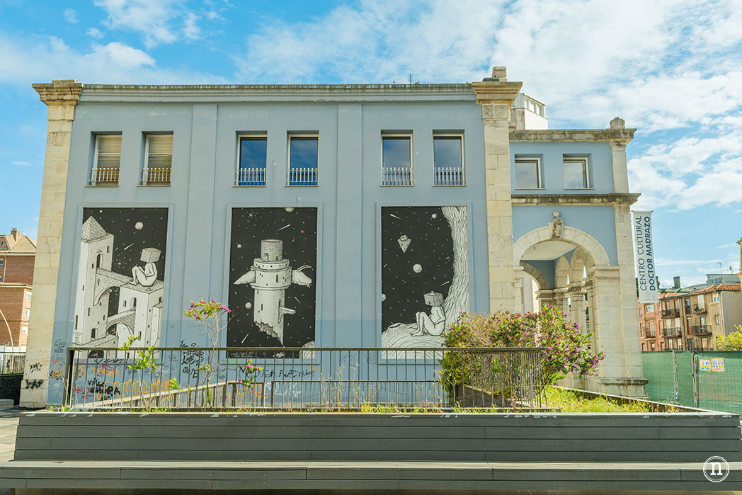 Desde esta calle nos encaminamos hasta la Biblioteca Dr. Madrazo situada en la calle Casimiro Sainz para conocer el siguiente mural.