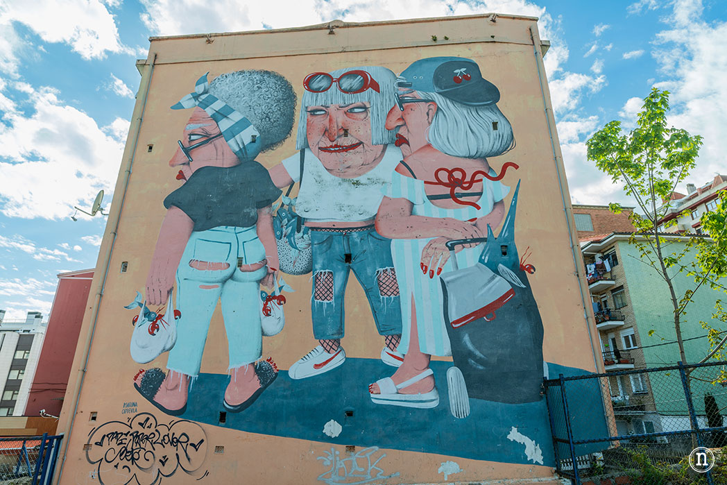 Así mismo, nada más bajar la escalera encontramos las Rederas. Se trata de una obra de Insulina kid que es un artista que domina tanto el muralismo como la ilustración y el comic.