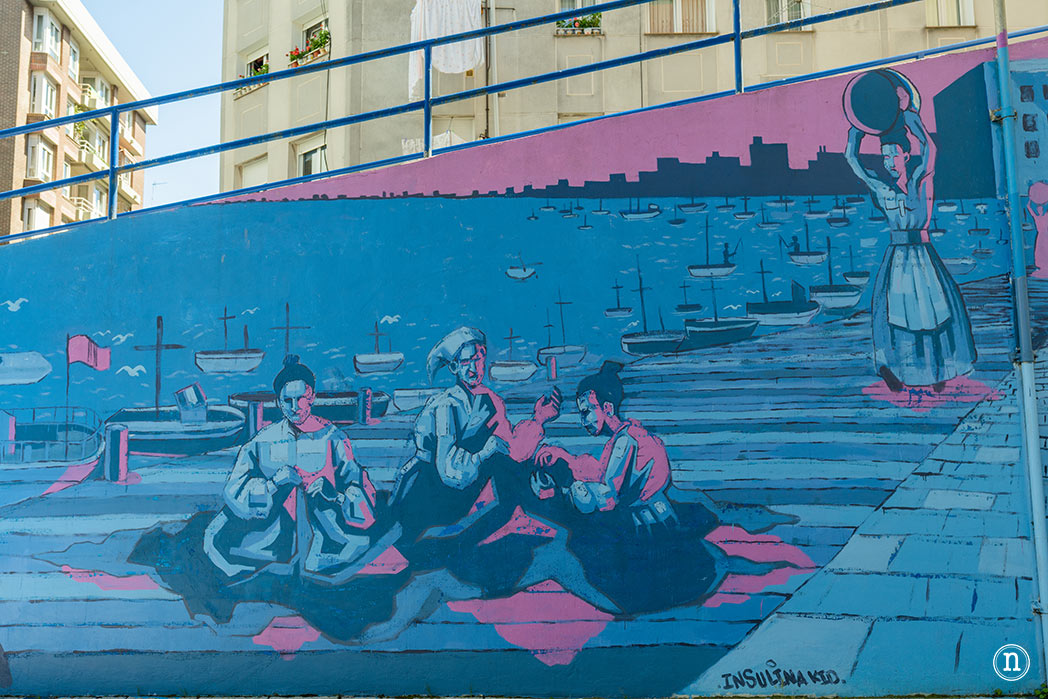 Algo tan importante como la identidad del lugar era lo que trataba de recuperar en parte esta obra. La asociación de Creativos llamada Simetría realizó esta obra en el año 2013 utilizando iconos históricos e identitarios de la zona para devolver al barrio su orgullo marinero.