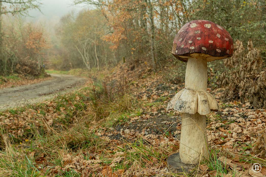 En una curva del camino, comenzamos a ver las primeras figuras por lo que nos paramos a observar y fotografiar esta enorme seta de la imagen.