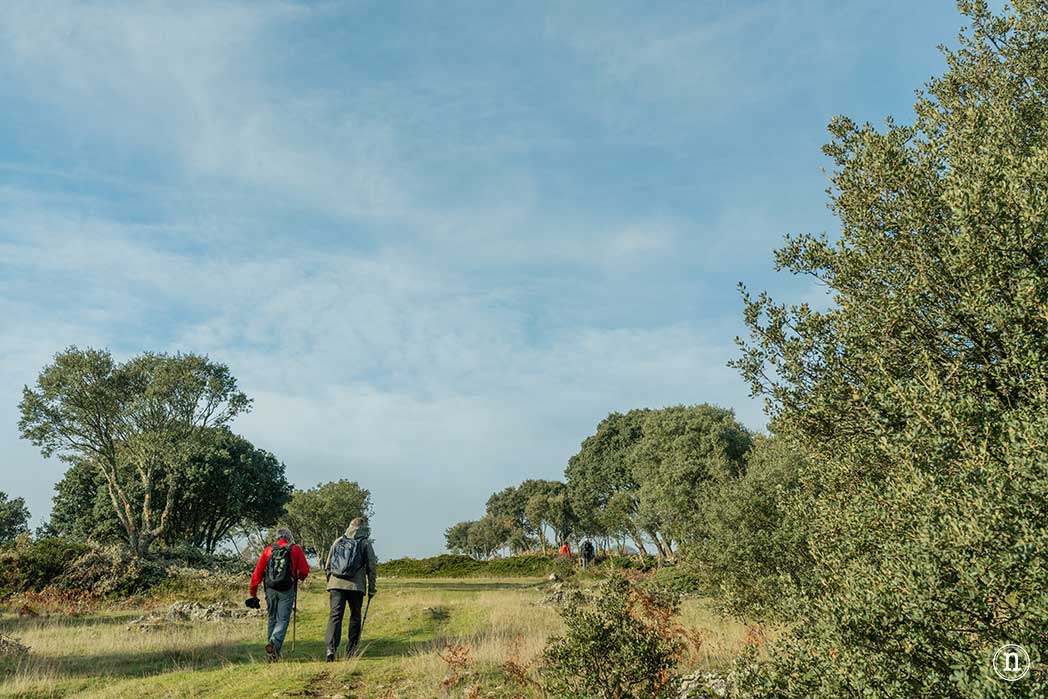 Por momentos, observamos como la temperatura aumenta y nos obliga a quitarnos algunas capas de ropa. Metros más adelante, iniciamos una pequeña y suave subida entre encinas donde contemplamos otra figura.