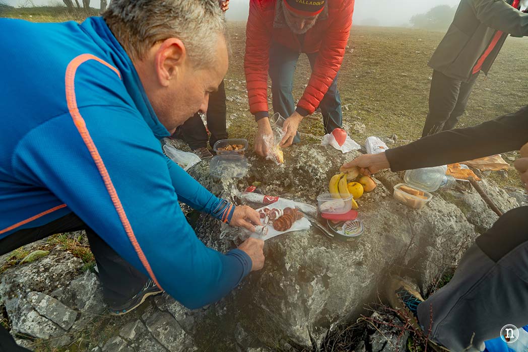 Entre unas rocas, los chicos del Comando Senderista deciden que es el momento y el lugar perfectos para comer algo. Pronto, entre todos, preparamos un almuerzo digno de los mejores restaurantes con estrella michelín.