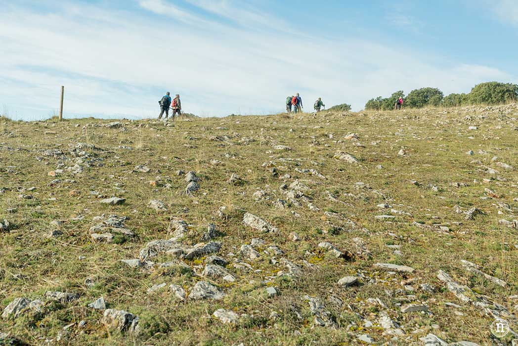 Desde este punto, nos disponemos a subir una pequeña pendiente que nos llevará hasta una zona donde podremos observar bastante territorio a nuestro alrededor mientras escuchamos los sonidos procedentes de las grajillas y las urracas.