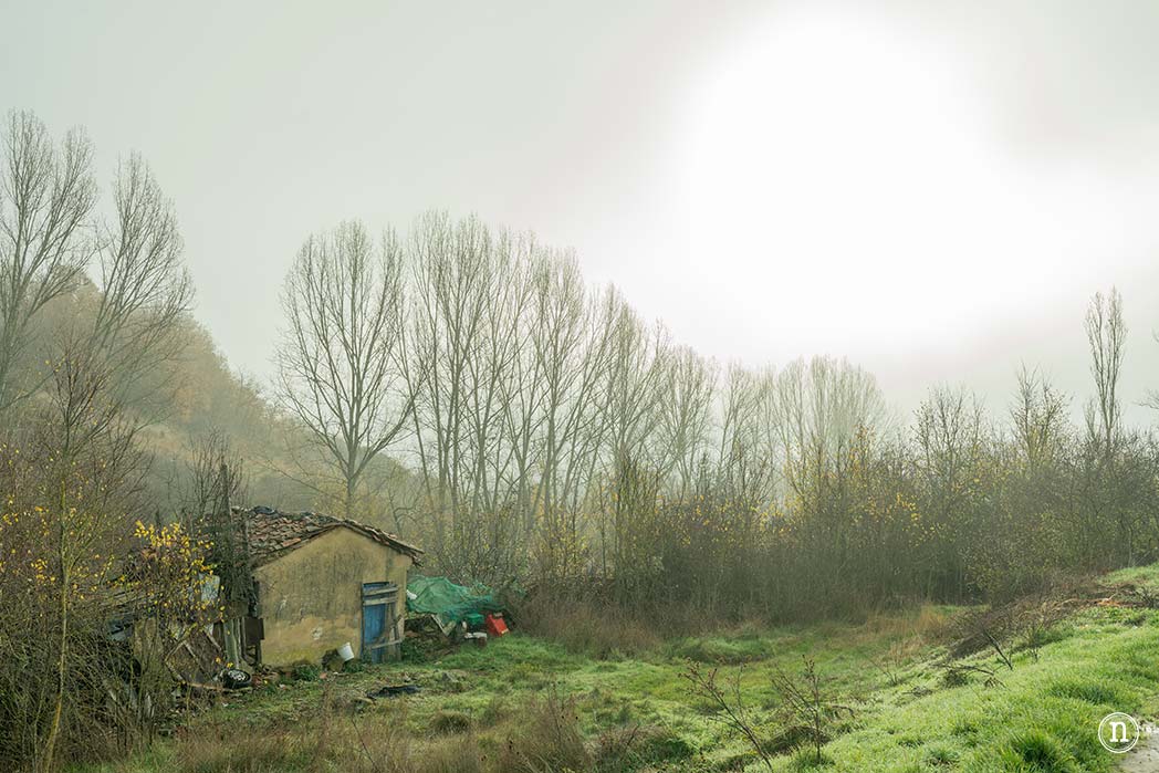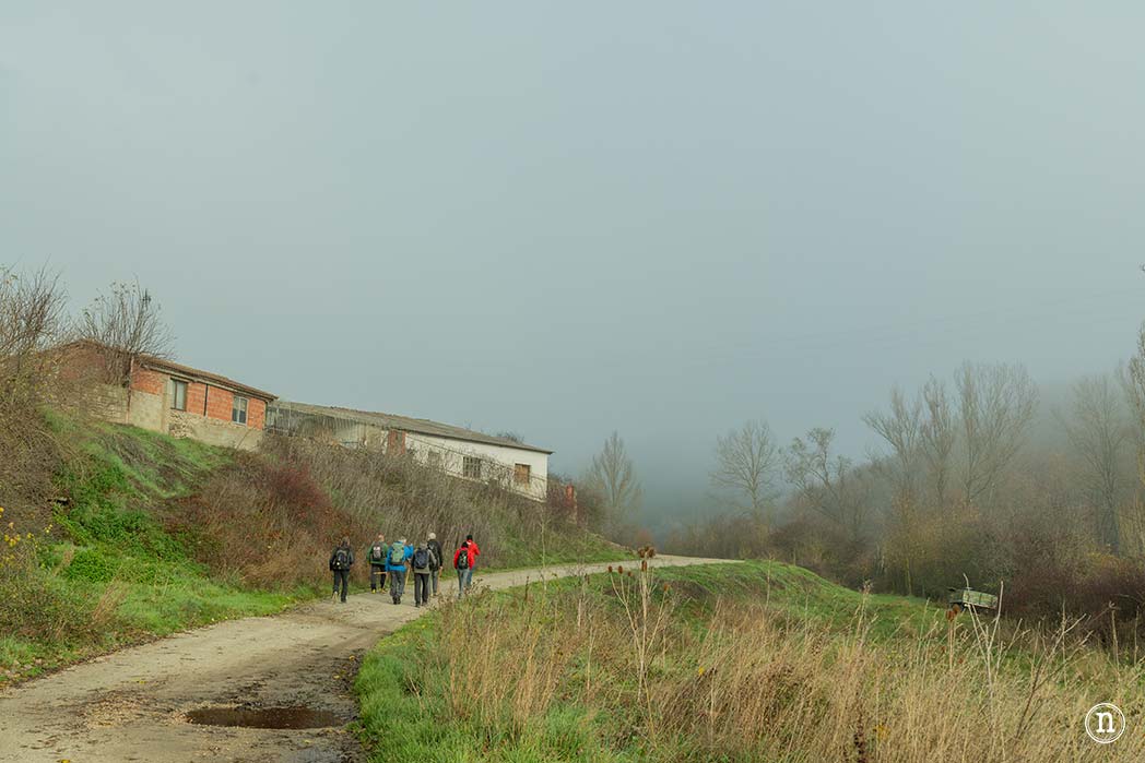 Bajo un manto de niebla que amenaza con hacernos temblar de frío y sentir la humedad hasta el fondo de nuestro ser, comenzamos a recorrer esta senda. Para ello debemos atravesar el pueblo que, para nuestra sorpresa se encuentra en obras y donde nos reciben expectantes un par de gatos.
