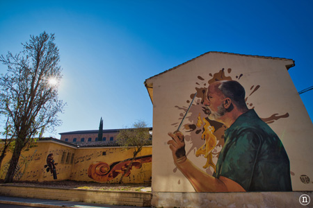Decidieron utilizar el vino para hacer el mortero y, actualmente, hay un mural que explica la historia.