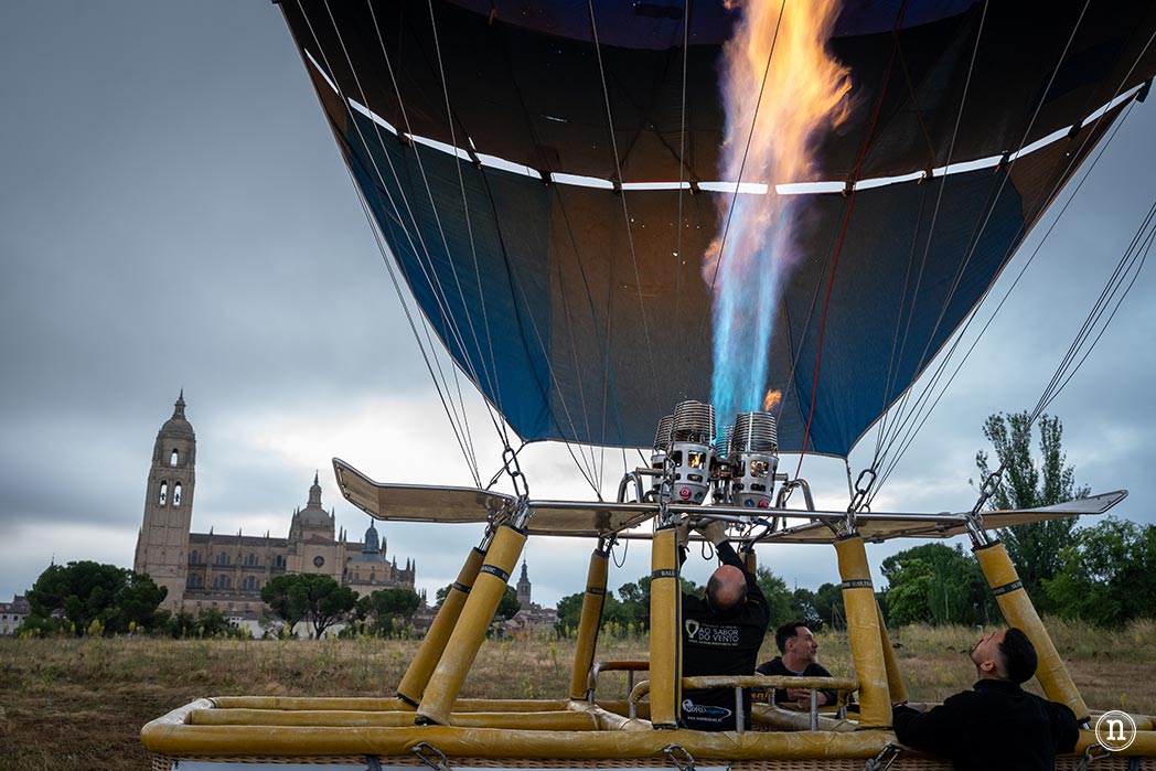Al fondo, el Alcázar y la catedral de Segovia nos observan y esperan para ser contemplados desde el aire. El día se ha despertado desapacible pero con poco viento, por lo que hoy cumpliremos el sueño de ver Segovia desde las alturas.