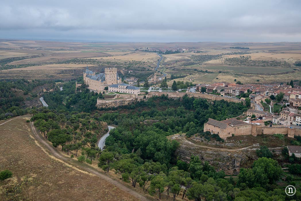 Lo primero que vemos es el Alcázar, imponente y del que dicen que fue la inspiración para el famoso castillo de Walt Disney. No nos extraña, Segovia es una ciudad de ensueño y desde el aire, más todavía.