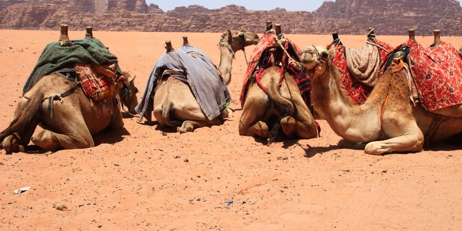 Nos dijeron que Wadi Rum está habitado por lobos, hienas, zorros, gacelas, antílopes, escorpiones, lagartos… No vimos ninguno, sólo beduinos y camellos.